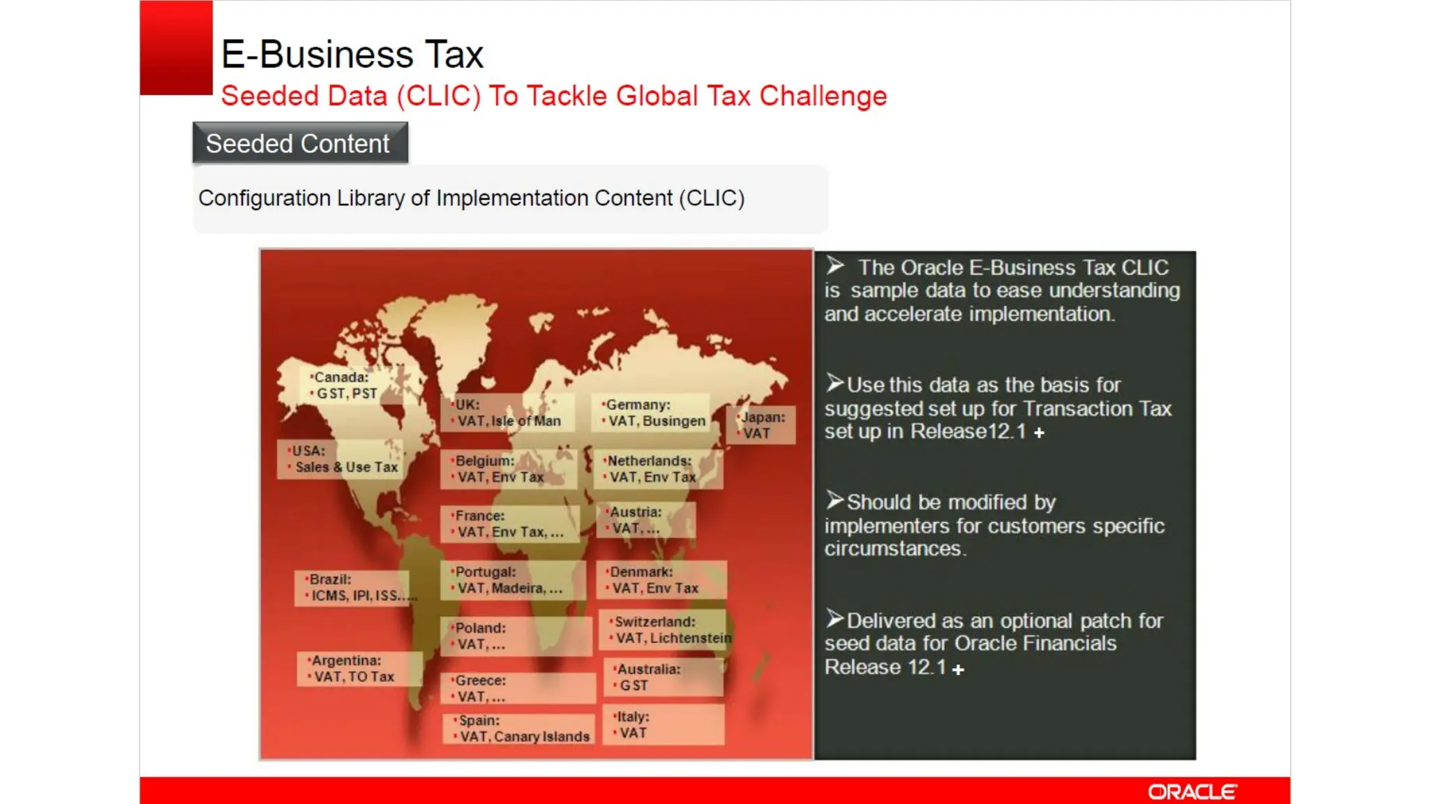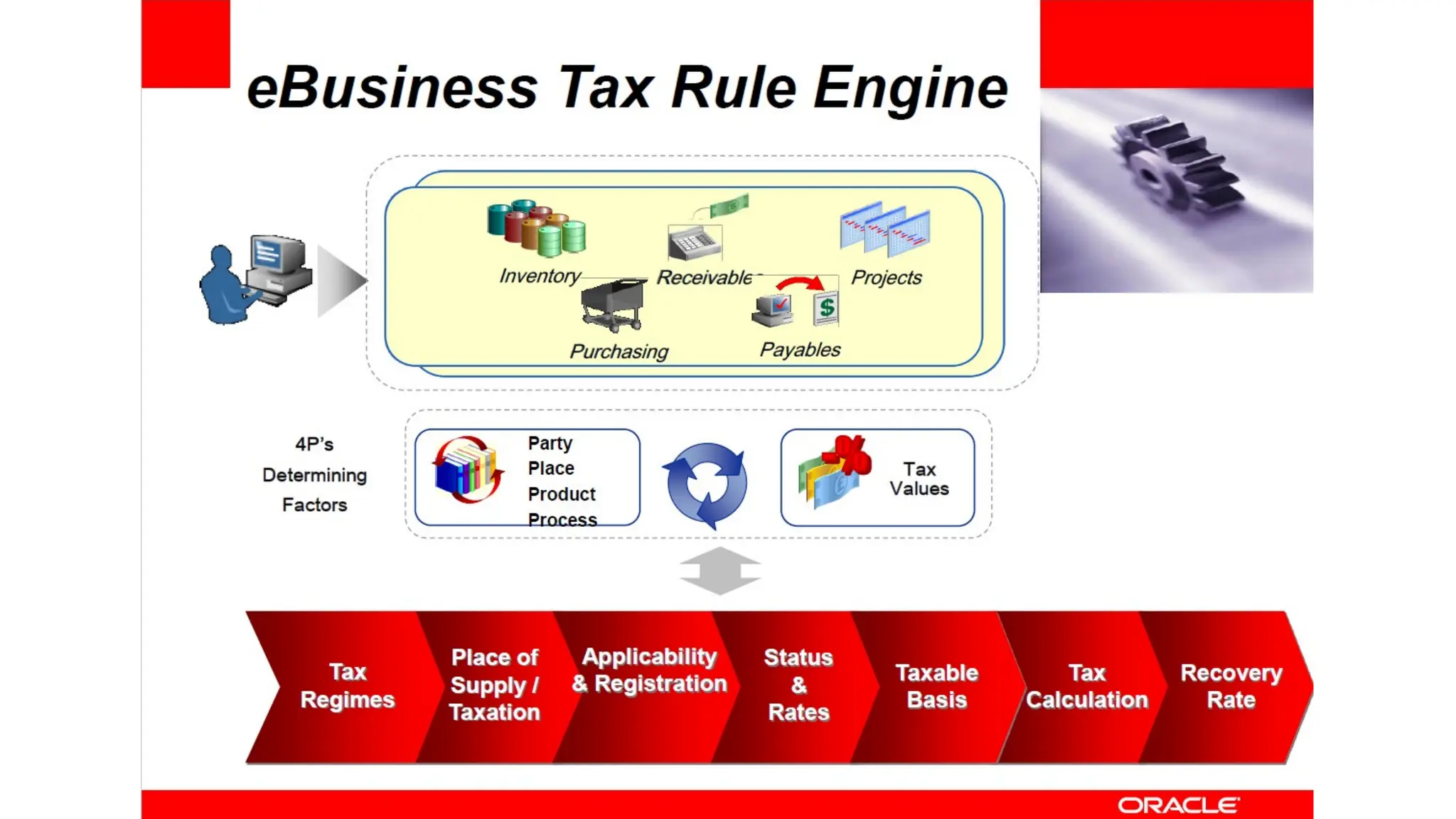 • Oracle Receivables application also has the concept of location-based tax in the US with tax structures