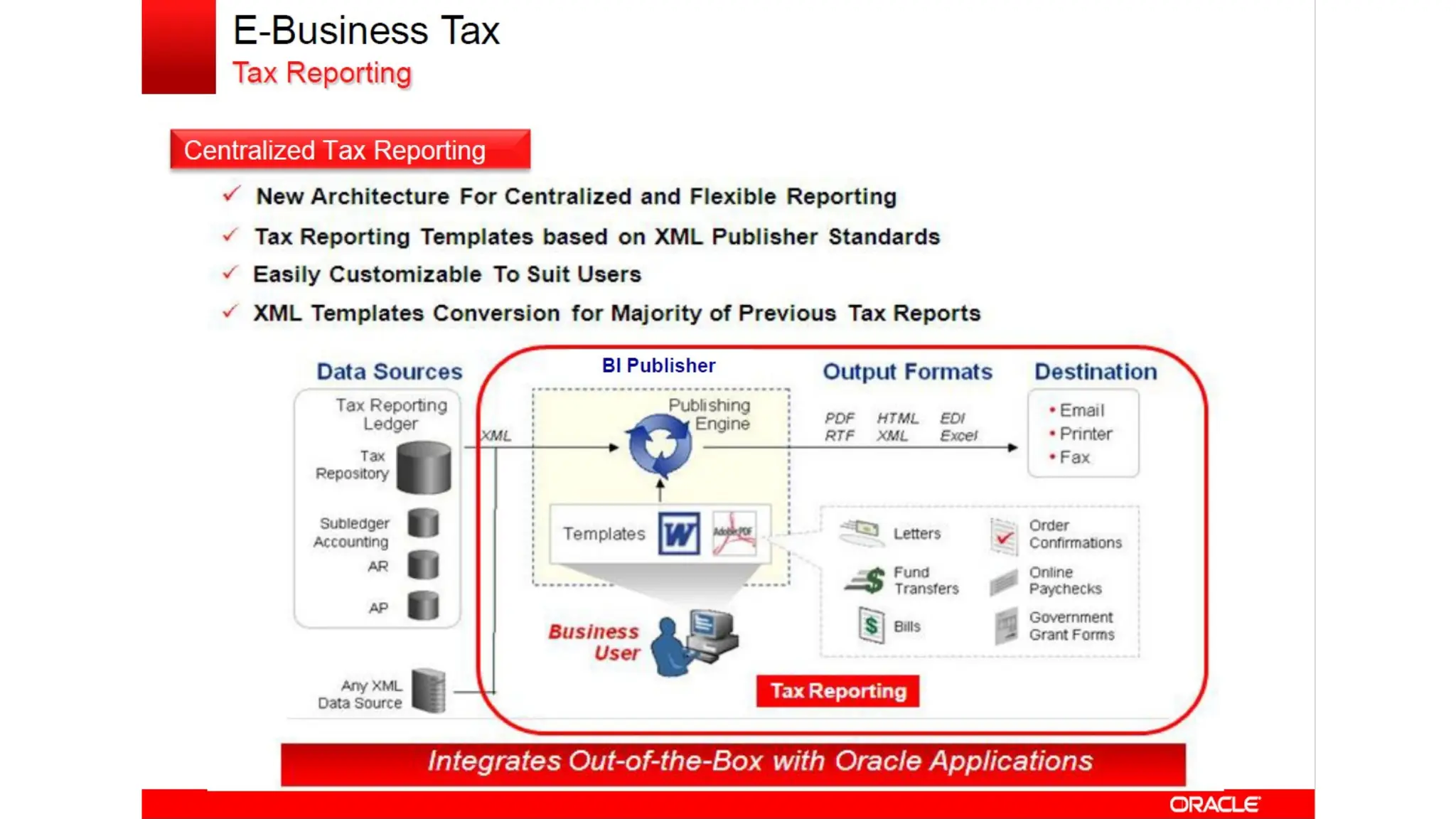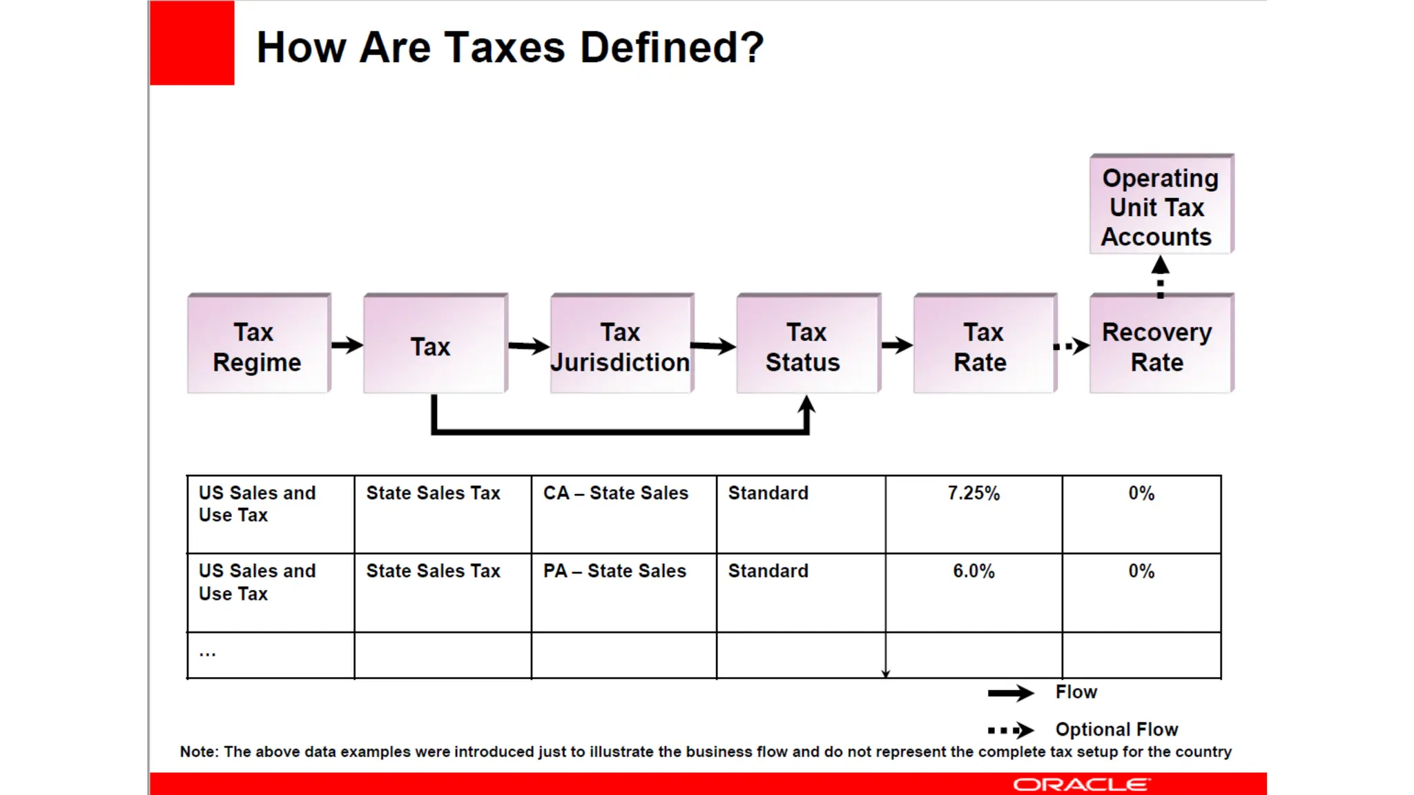 • A Regime will be created for each Operating Unit and Tax Type. A Tax, Status, and Tax Rate will be created
