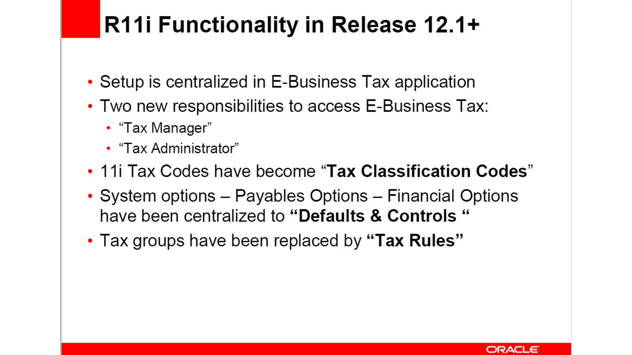 • Tax Codesand Tax Groups in 11i Receivables will be migrated in the same manner as those in 11i