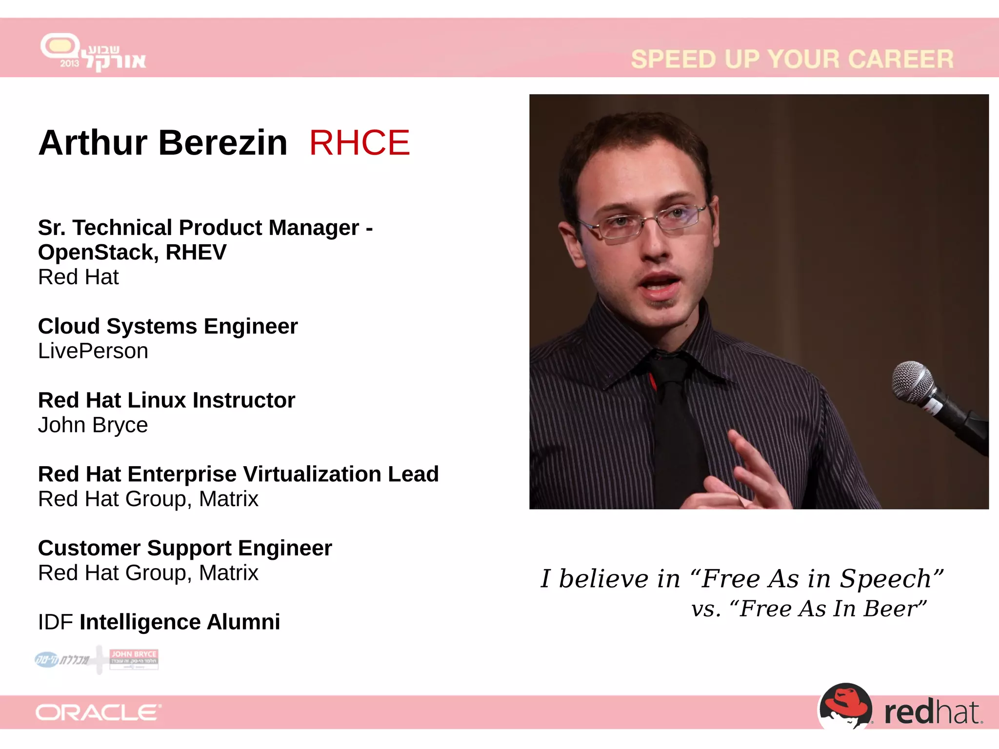 Arthur Berezin, a senior technical product manager at Red Hat, presented on OpenStack and its functionalities, highlighting its modular architecture for cloud-enabled workloads and seamless scaling. The presentation discussed various OpenStack core projects, including compute, image, object, networking, and storage services, all aimed at improving cloud infrastructure management through a community-driven approach. Furthermore, the Red Hat OpenStack platform is designed for enterprise use, facilitating long-term deployments with support and certification through Red Hat's partner network.