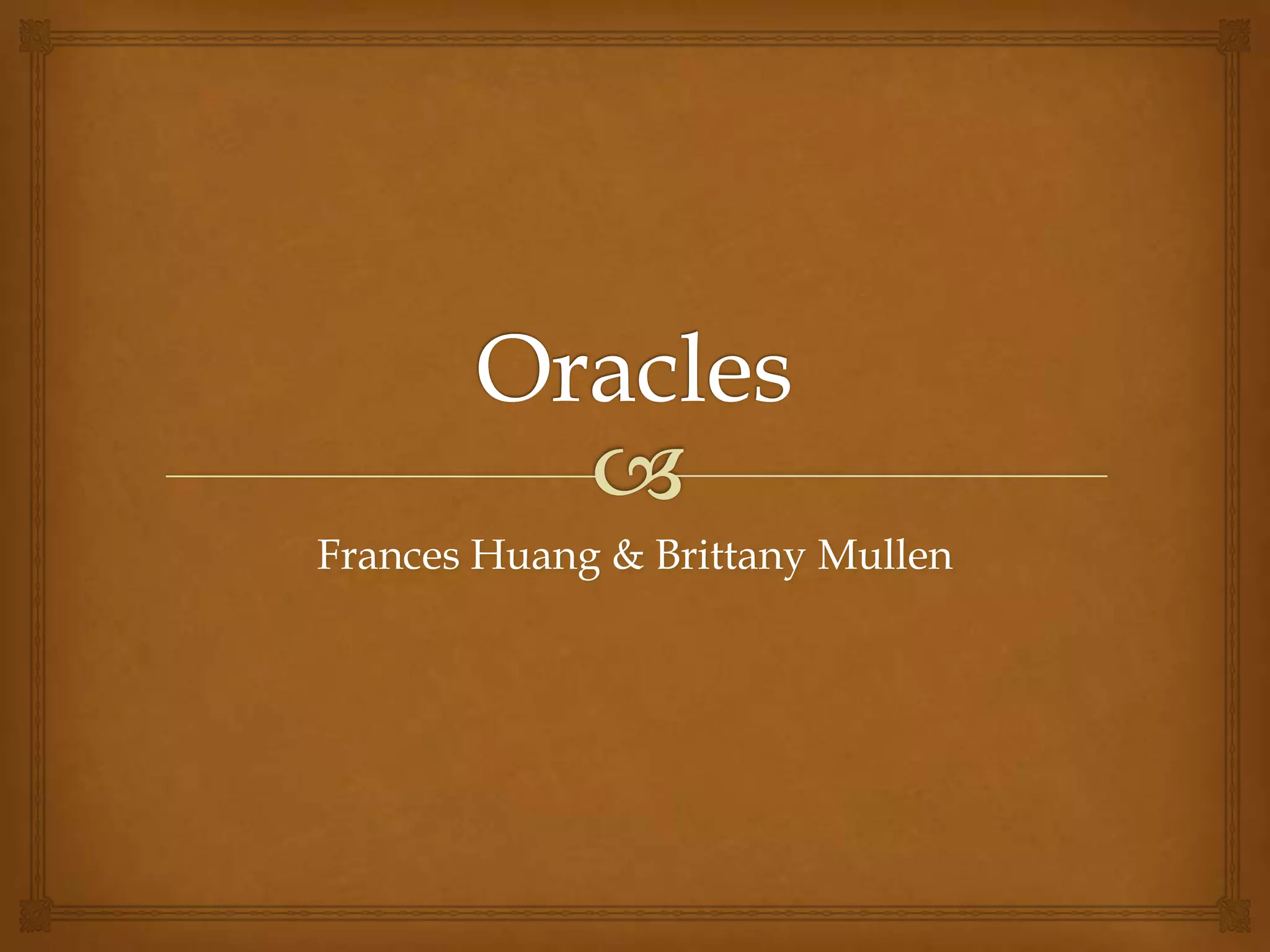 The document discusses ancient Greek oracles and methods of divination. It describes several major oracles including Delphi (associated with Apollo), Dodona (associated with Zeus), and Epidaurus (associated with Asclepius the god of healing). The oracle priests and priestesses would use various techniques like inhaling vapors, dreaming, or interpreting natural phenomena to transmit prophecies. While oracles' messages were often vague, they were widely trusted and consulted about important matters like war, marriage, and medicine. Famous myths and figures like Oedipus and Croesus illustrate oracles' predictions coming true.