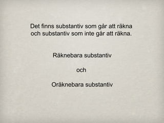 ✴ Det finns substantiv som är oräknebara på engelska, men