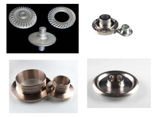 Orbital forging, also known as rotary forging, is a forging process where one die rotates relative to the other, gradually deforming the workpiece into the final shape. The tilt angle between the dies determines the amount of forging force applied. While orbital forging requires less force than conventional forging, the process is limited to symmetrical parts due to complex die motions required for asymmetrical shapes. Common applications include gears, hubs, and thin disks. Advantages include lower forces, accuracy, and tooling costs compared to conventional forging.