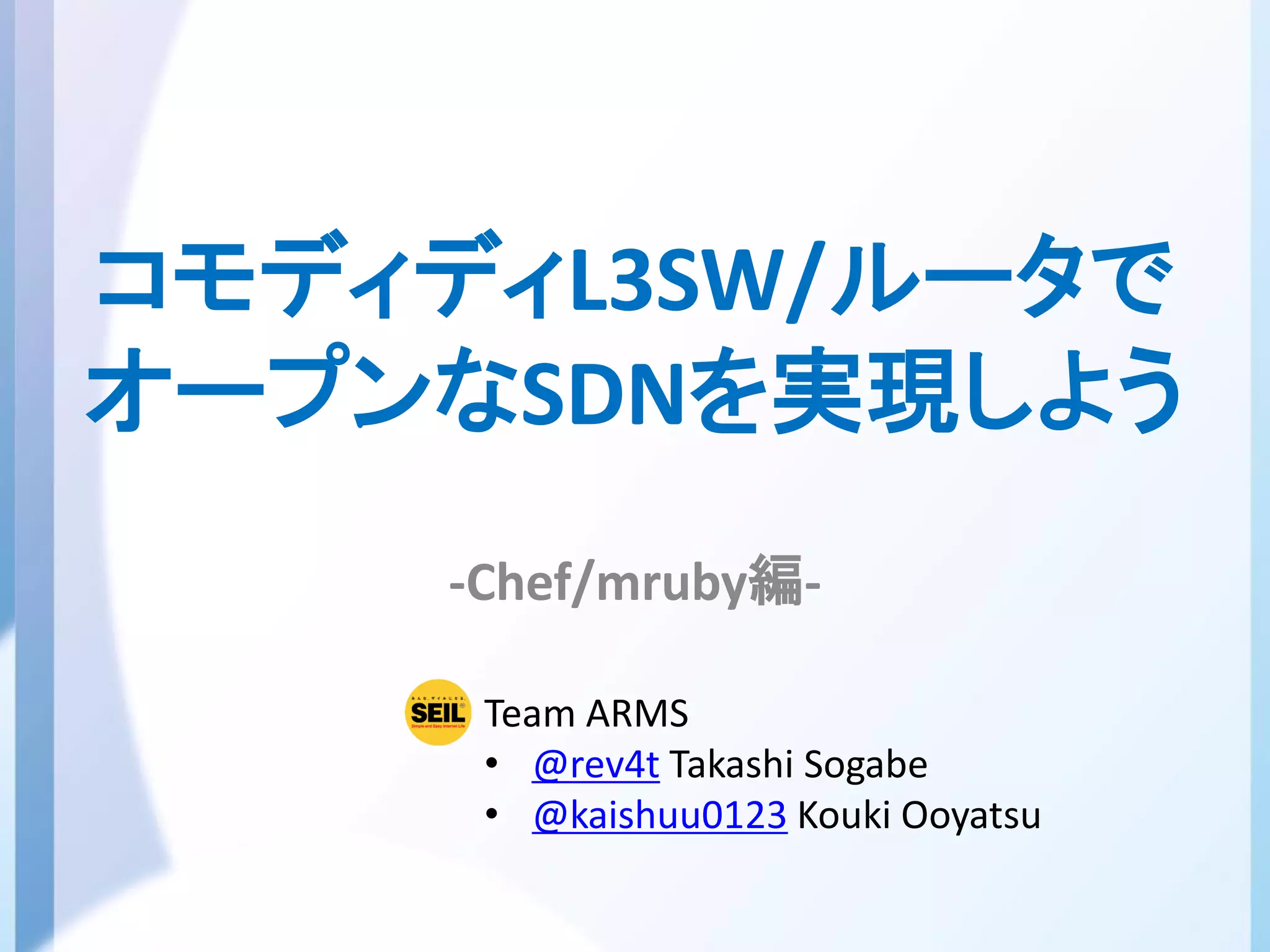 Presentation slide of Open Router Competition 2013 (ORC2013) Team ARMS The event is held at Interop Tokyo. http://www.interop.jp/2013/orc/