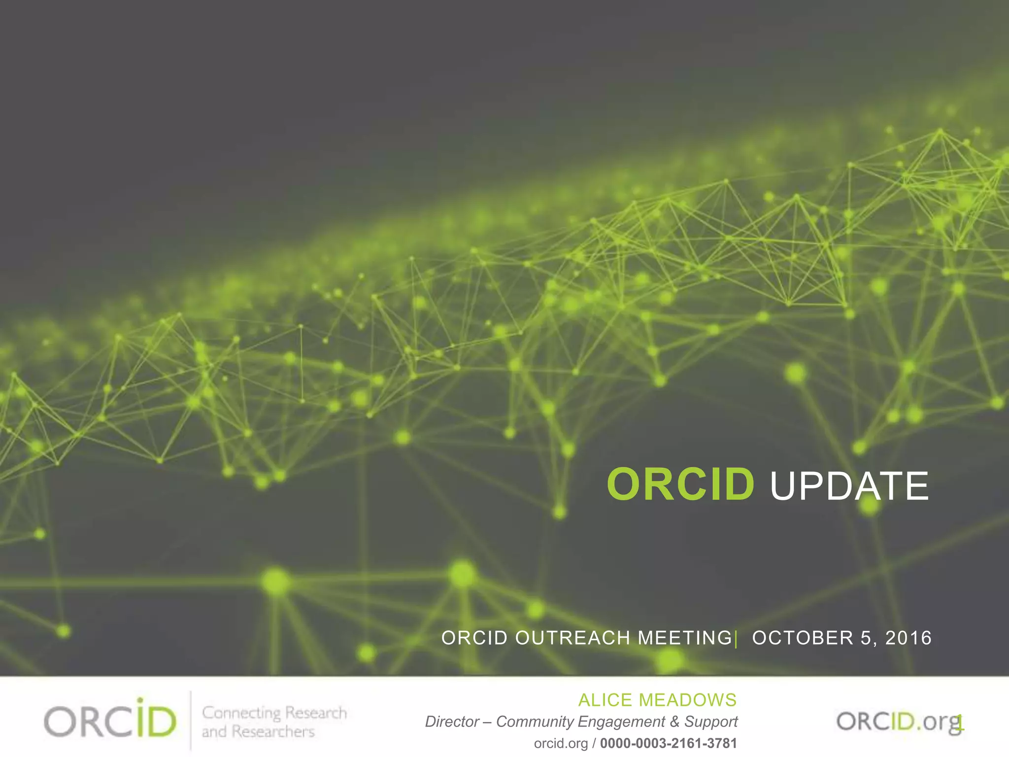The document provides an update on ORCID activities from October 2016. Key points include: