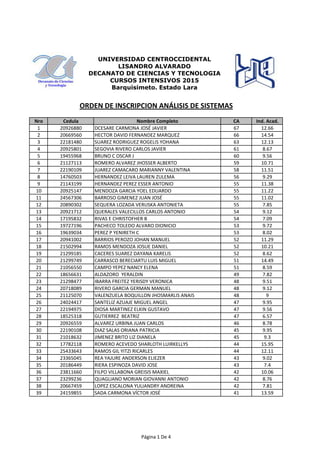 **************************** ** INTENSIVOS 2015 ** **************************** Orden de inscripción para Analisis de Sistemas