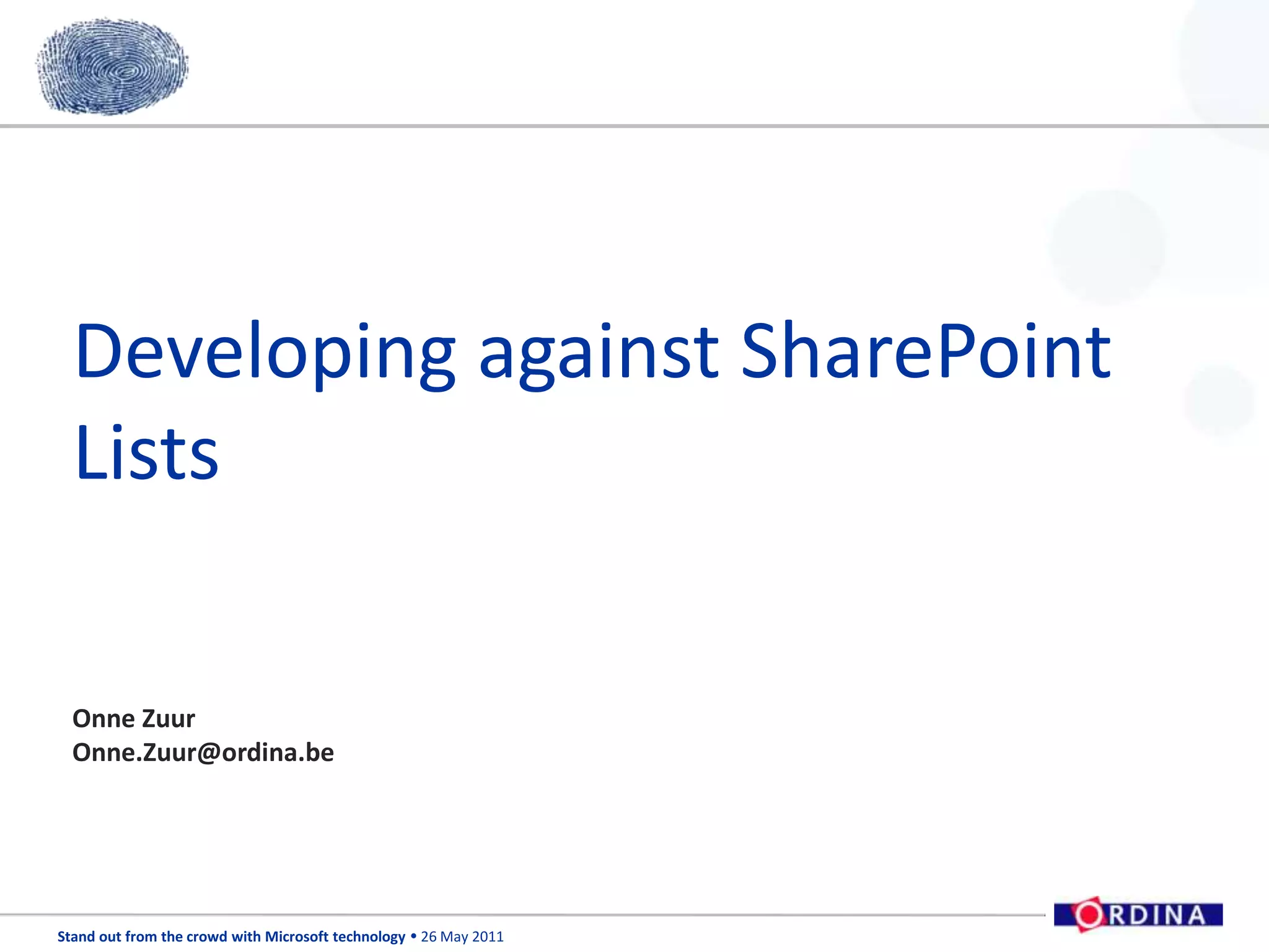 The document discusses various SharePoint list APIs and services, including server-side and client object models, WCF data services, and list web services. It emphasizes best practices for developing against SharePoint, suggesting the client object model as the preferred choice in many scenarios. The document includes multiple demonstrations and guidance on custom service implementations in SharePoint 2010.