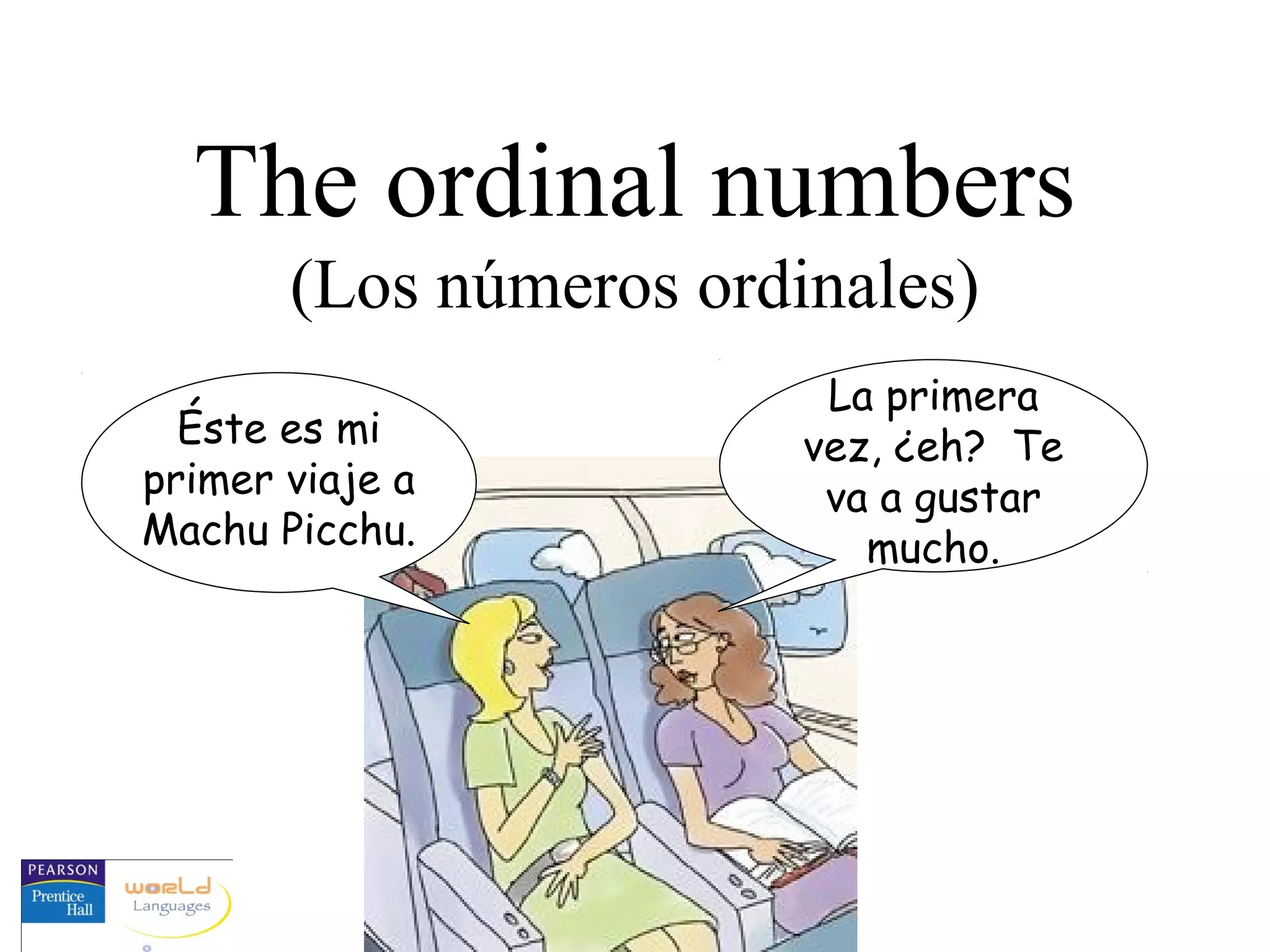 This document discusses ordinal numbers in Spanish. It provides the Spanish ordinal numbers from primero/a (first) to décimo/a (tenth) and explains how they are used to indicate order or sequence. It notes that ordinal numbers above décimo/a are rarely used, and cardinal numbers are typically used instead. The document also demonstrates how the ordinal numbers are used with nouns and as pronouns, and provides examples of their usage.