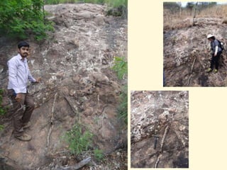 This document discusses key concepts related to ore deposits and ore-forming processes. It defines mineralization as the geological formation of economic minerals in a lithological unit through natural earth processes. For a mineralization to be considered a mineral deposit, it must meet minimum thresholds for metal quantity and grade. Ore deposits are classified based on characteristics like host rock, mineral assemblage, size, and geological formation process. Metals are sourced from crustal or mantle rocks, transported by aqueous fluids complexed with ligands, and concentrated at deposition sites where drastic changes in pressure, temperature, or fluid composition occur. Driving forces include heat from volcanic or plutonic activity and fluid flow influenced by topography or geothermal gradients.