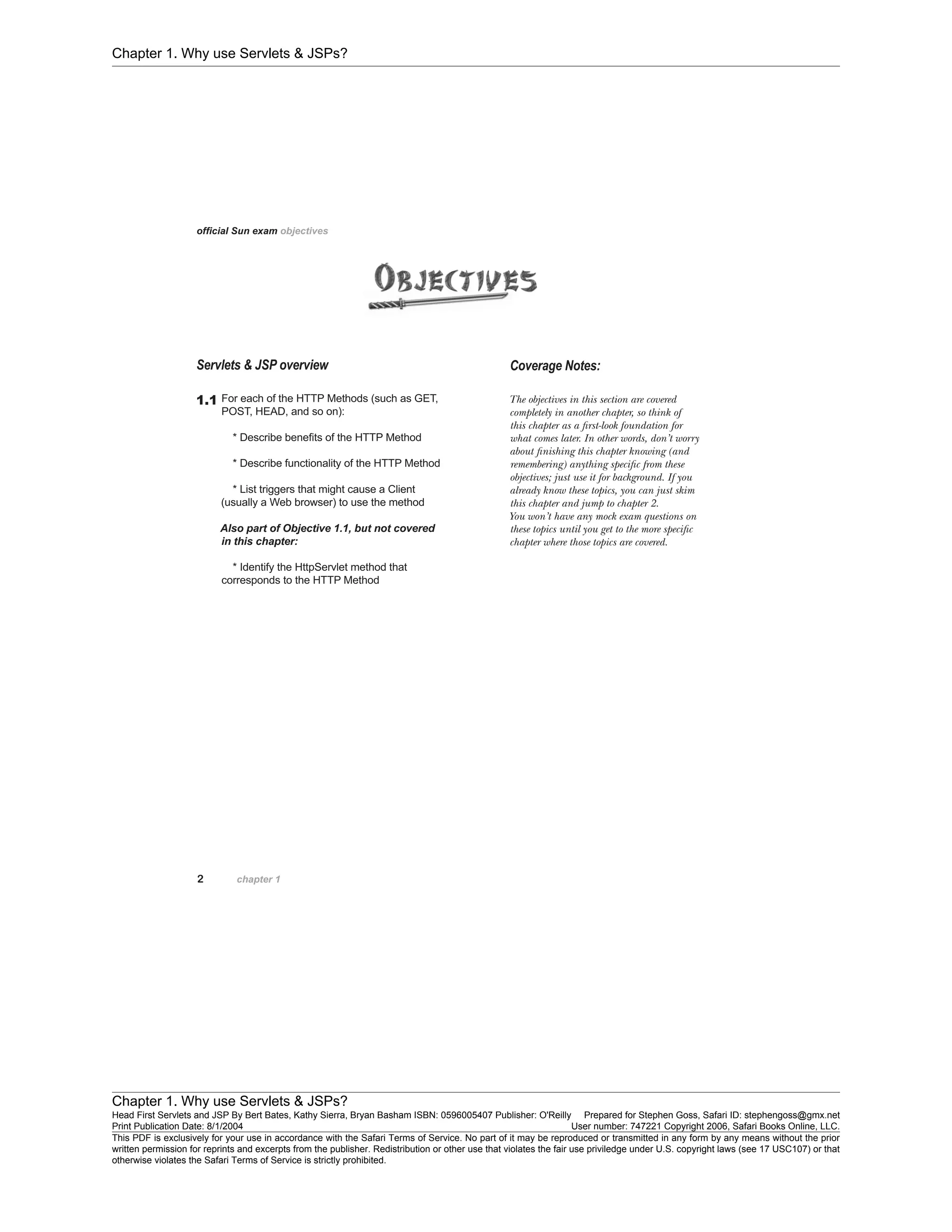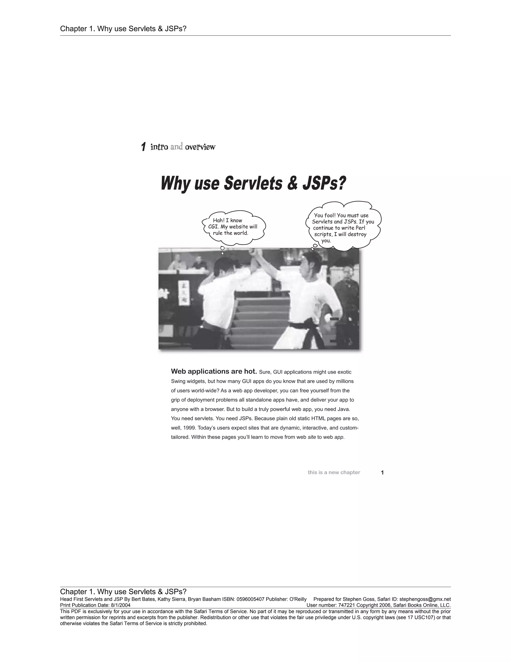 Head First Servlets and JSP By Bert Bates, Kathy Sierra, Bryan Basham ISBN: 0596005407 Publisher: O'Reilly Prepared for Stephen Goss, Safari ID: stephengoss@gmx.net