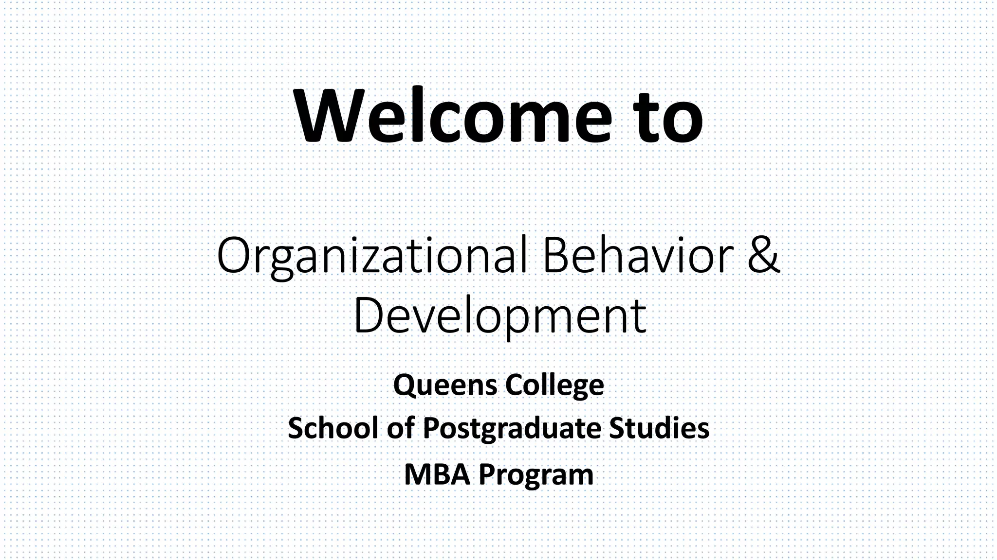 This document provides information about an Organizational Behavior & Development course for an MBA program. It introduces the instructor, describes the course objectives and content, and outlines the assessments and textbook. The course is divided into four chapters covering introductory concepts, individual behavior, group behavior, and organization dynamics. It will help students explain the impact of individuals, groups, and organizations on workplace behavior and apply this knowledge to improve productivity and job satisfaction.