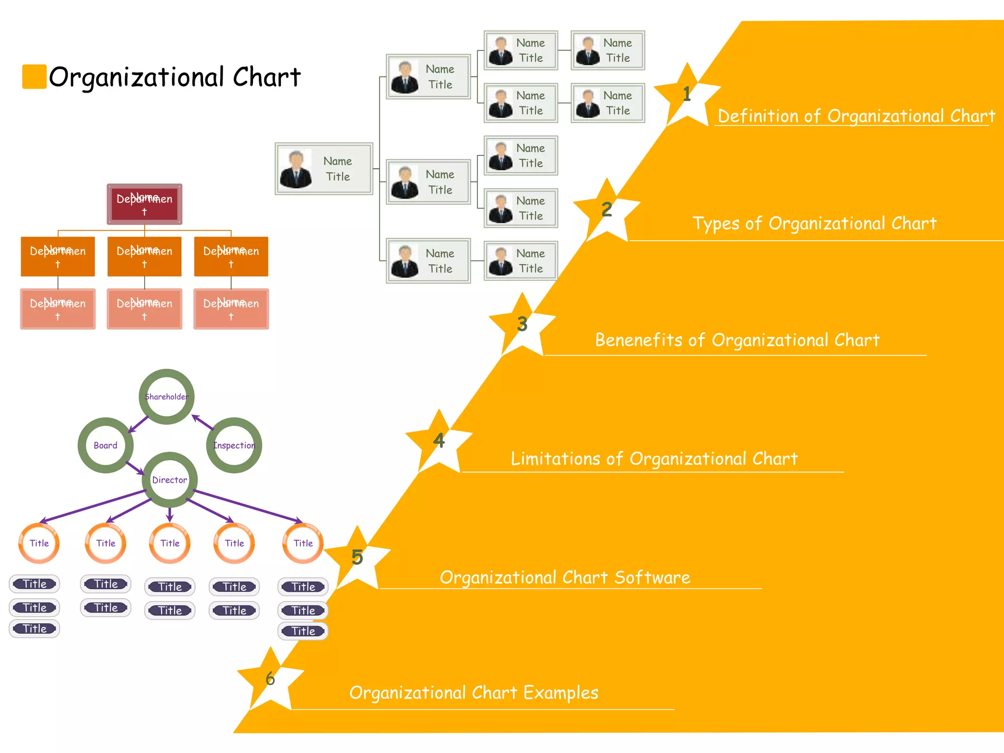 An organizational chart (org chart) is a diagram that depicts the structure of an organization, showing the ranks and relationships among its various positions. There are three main types of organizational charts: hierarchical, flat, and matrix, each serving specific structural purposes. While org charts are beneficial for clarifying roles and enhancing coordination, they also have limitations, including an inability to reflect informal relationships and a tendency to become outdated quickly.