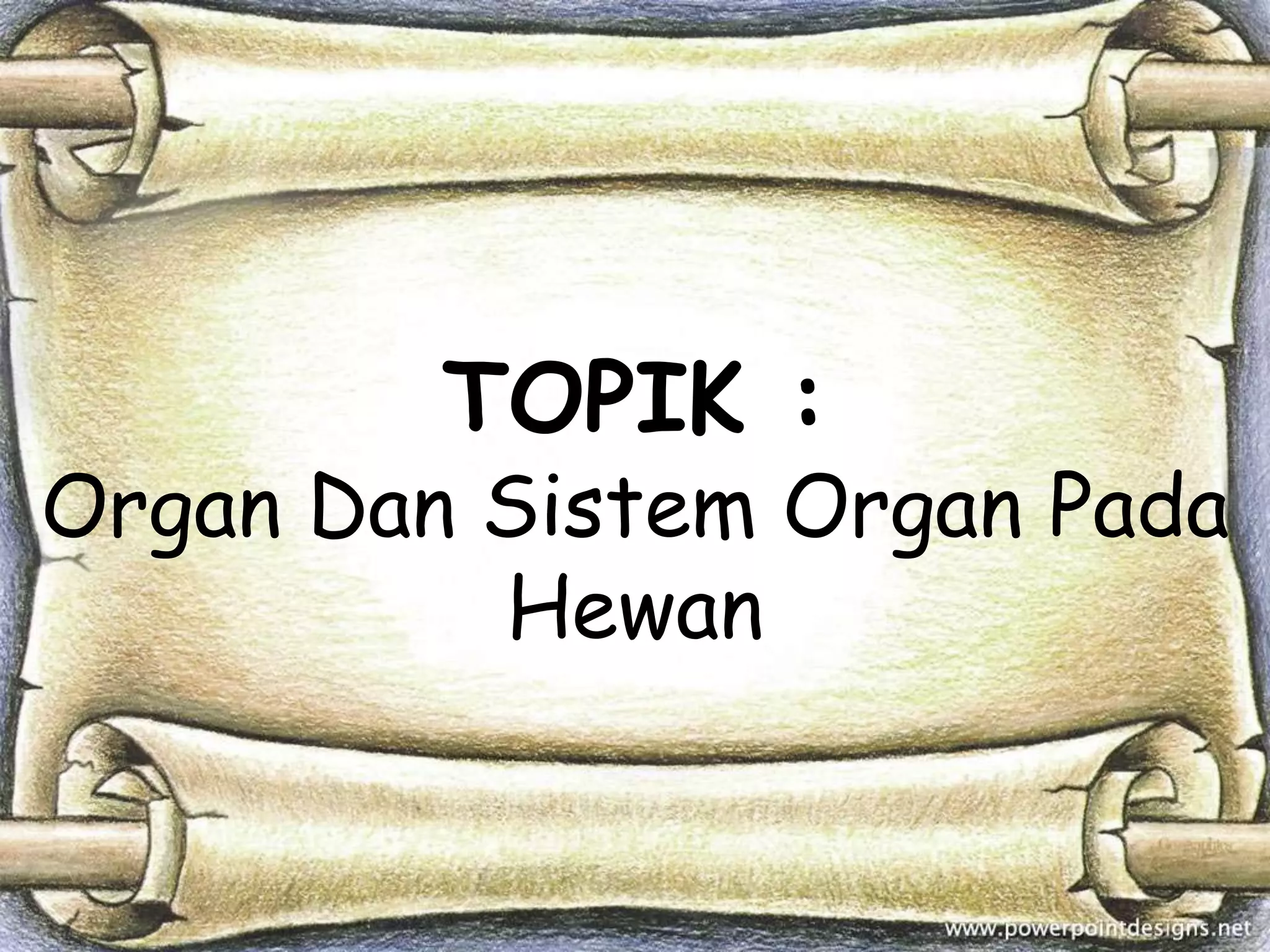Dokumen ini menjelaskan tentang organ dan sistem organ pada hewan, yang terdiri dari berbagai jenis jaringan untuk menjalankan fungsi tertentu, serta menyampaikan bahwa terdapat 9 sistem organ dalam tubuh hewan vertebrata. Setiap sistem organ, seperti sistem pernapasan, peredaran darah, dan pencernaan, memiliki komponen dan fungsi spesifik yang penting untuk kelangsungan hidup hewan. Selain itu, sistem organ bekerja secara harmonis untuk mendukung berbagai proses fisiologis dalam tubuh.