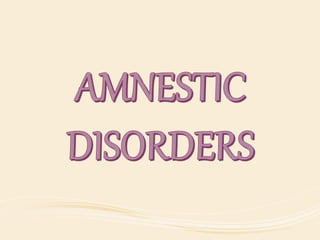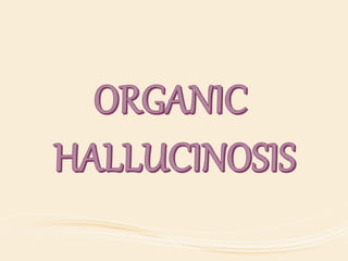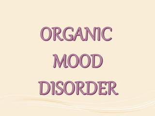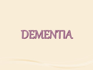 The document discusses organic mental disorders, particularly focusing on organic brain syndrome, cognitive deficits, and types such as acute and chronic organic mental disorders. It covers definitions, classifications, etiology, diagnosis, and the spectrum of dementia, illustrating its impact on cognitive and daily functioning. Furthermore, it highlights the prevalence of dementia and its stages, emphasizing the need for careful diagnosis and recognition of behavioral symptoms.