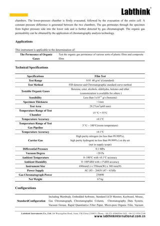 The perme® or2/411 is an advanced organic gas permeability analyzer that combines differential pressure methods with chromatography for quantitative and qualitative analysis of various films and sheets. It features automatic temperature control, an embedded computer control system for reliable data management, and user-friendly software for intelligent operation. The instrument supports a wide range of test parameters and is suitable for determining the permeance of organic gases, making it valuable for various applications in material testing.