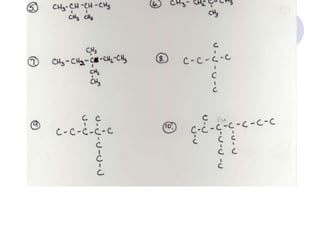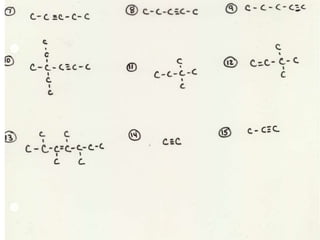 - Hydrocarbons only contain carbon and hydrogen, including alkanes (single bonds), alkenes (double bonds), and alkynes (triple bonds)
