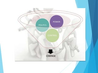 This document summarizes organizational behavior and resistance to change. It defines organizational change as a planned or unplanned transformation within an organization, including changes to mission, strategy, technology, operations, or personnel attitudes and behaviors. Resistance to change occurs when changes are not well understood or interpreted, and represents different interests within an organization. The document then discusses reasons for resistance to change such as dislike of change, uncertainty, or perceived negative impacts. It analyzes Kodak as a case study, describing its early success with film but then failure to adapt to digital photography. The document concludes that overcoming resistance to change requires addressing employees' fears, assessments, trust, change methods, and inertia.