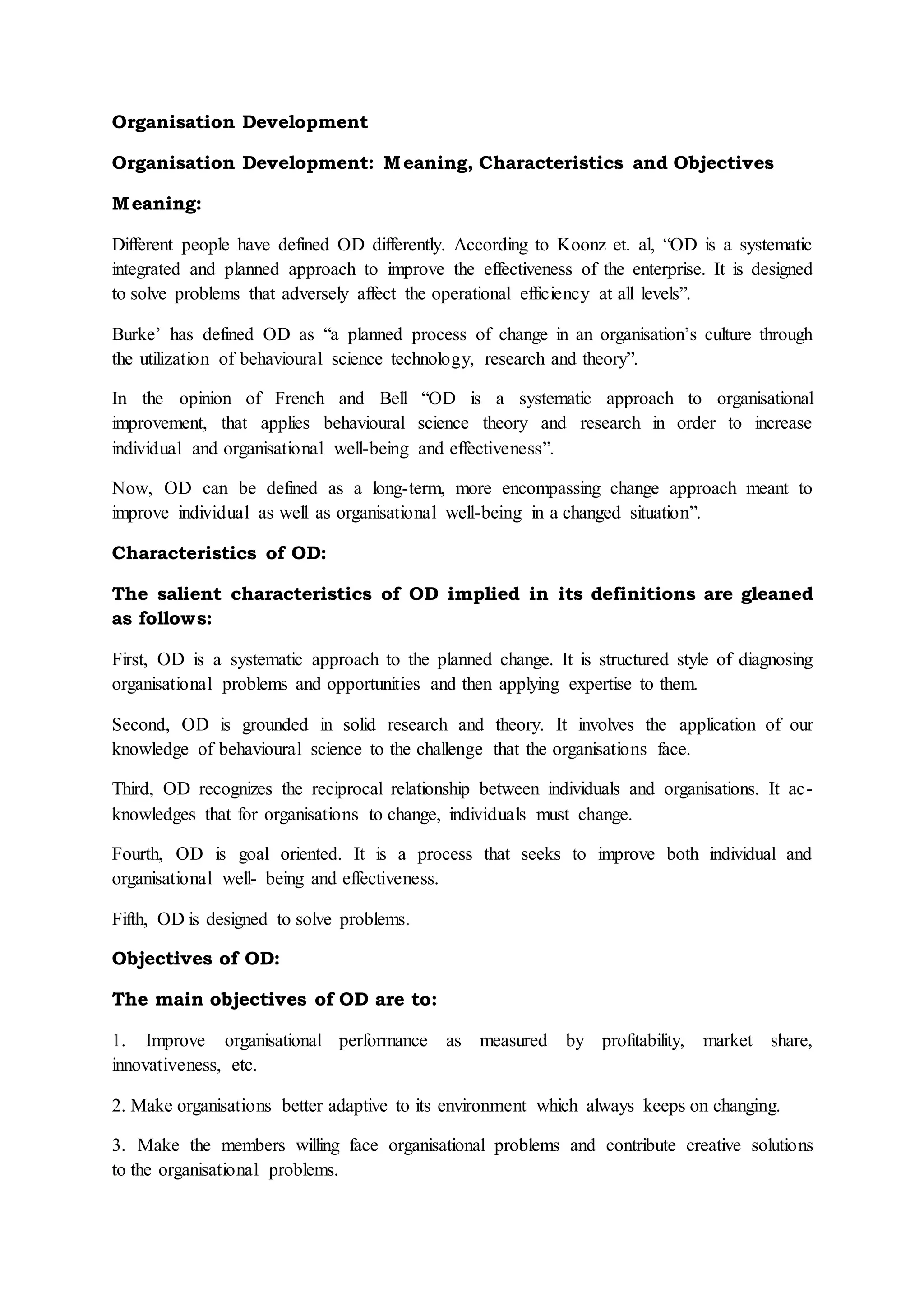 3. Objectives of OD are to improve performance, adaptability, problem-solving, behaviors like communication, and self-understanding within the organization.