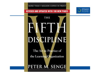 This document discusses the importance of organizational learning and creating a learning organization. It defines a learning organization as one where people at all levels are continually increasing their capacity to produce results they care about. A learning organization promotes information sharing between employees to create a more knowledgeable workforce that is flexible and able to accept new ideas and changes through a shared vision. It also discusses five disciplines that are important for organizational learning: systems thinking, personal mastery, mental models, building a shared vision, and team learning.
