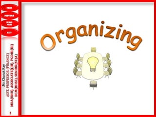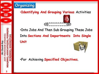 The document outlines the principles of organizational structure, highlighting the importance of job design, departmentalization, and the assignment of duties to achieve specified objectives. It distinguishes between formal and informal organizations, emphasizing the roles, relationships, and communication methods within these structures. The text also discusses the benefits of specialization and the impacts on administration, including factors that affect organizational structure and effectiveness.