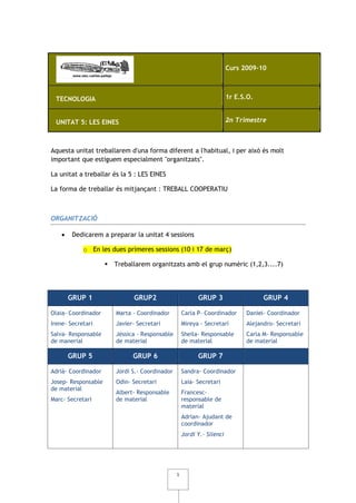Treballarem organitzats amb el grup numèric (1,2,3....7)