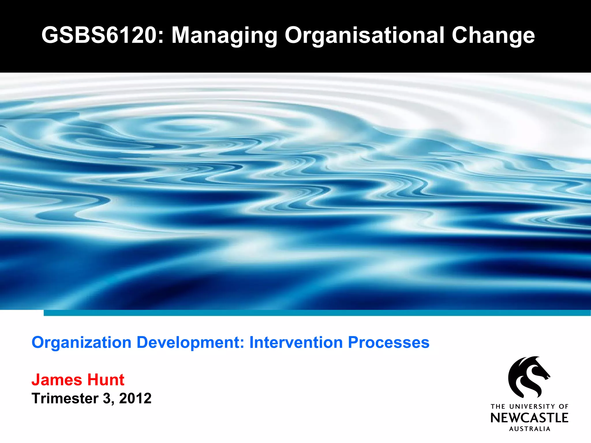 The document discusses organizational development (OD) and the processes involved in managing change within organizations, emphasizing planned change, diagnostic models, and interventions. It outlines key characteristics of OD, such as encouraging collaboration, focusing on human and structural aspects, and the importance of internal commitment to change. Various interventions are categorized, and models such as Lewin's three-step model and French and Bell's classifications of OD interventions are explored to illustrate different approaches to effective change management.