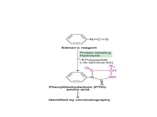 The document provides an in-depth overview of protein structure and function, detailing the organizational levels of proteins including primary, secondary, tertiary, and quaternary structures. It emphasizes the role of amino acids, the importance of specific sequences for proper function, and methods of determining polypeptide sequences. Additionally, it outlines various roles of proteins in biological processes, such as enzymes, oxygen transport, and tissue structure.