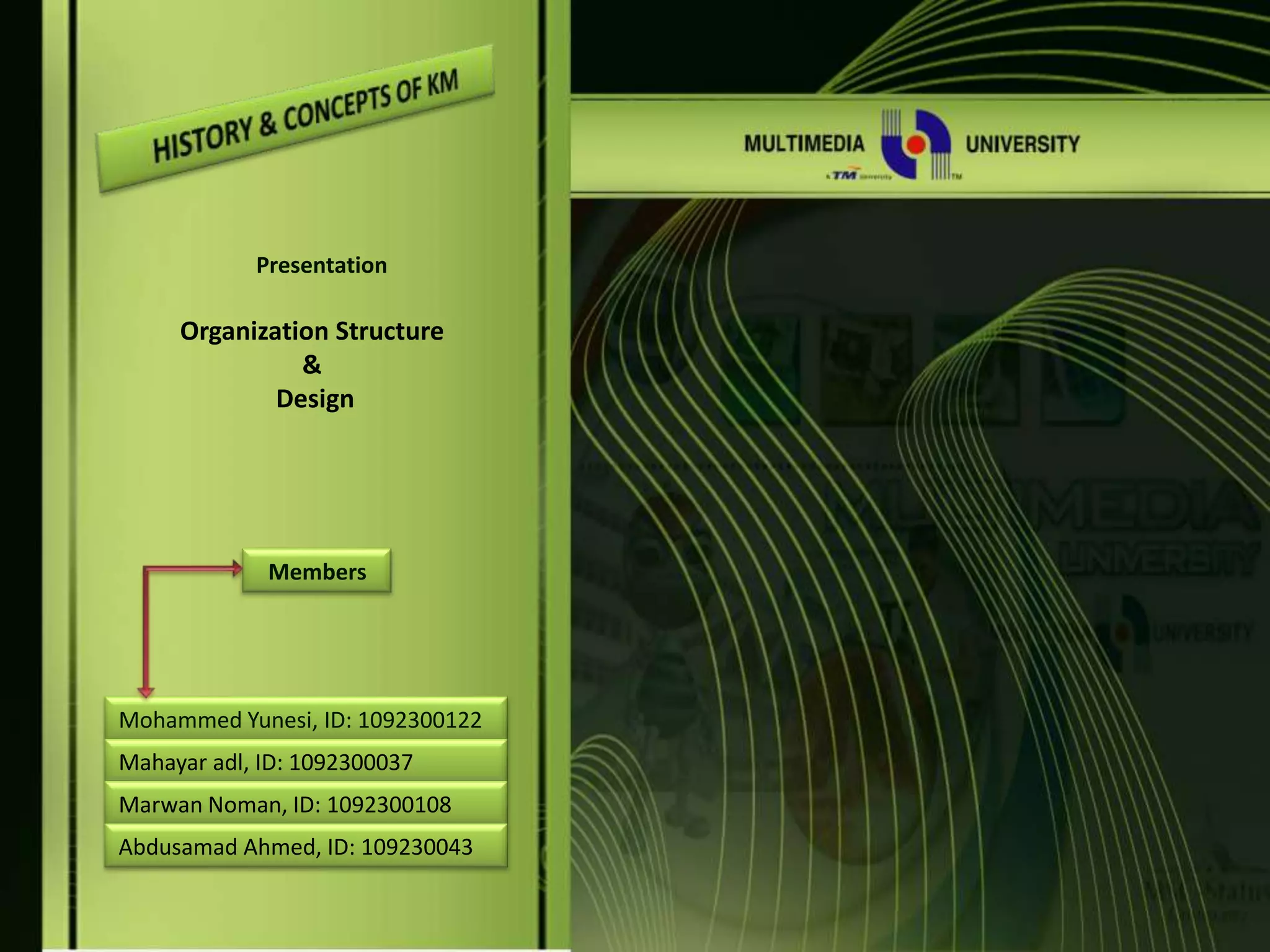 The document discusses various concepts related to organizational structure and design including departmentalization, establishing reporting relationships, allocating authority, coordination activities, and basic forms of organizational design. It provides examples of different departmentalization approaches like functional, team-based, matrix, and network. It also outlines principles of organizational design such as division of labor, unity of command, and spans of control. Current issues organizations face include adapting to a changing environment and addressing workforce diversity and ethics.