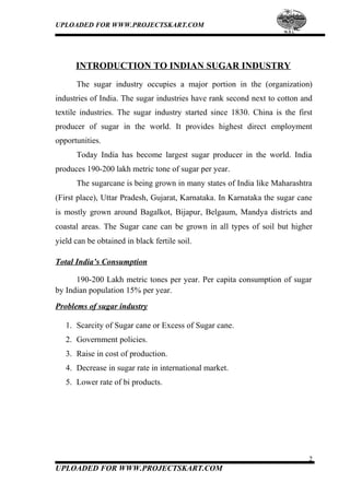 The document provides information about Nirani Sugars Limited, an Indian sugar company. It discusses [1] the history and background of the company, including its establishment in 1997 and expansion plans; [2] the key promoters and board of directors; and [3] the various departments within the organization. The company aims to efficiently utilize local resources to produce sugar and by-products, support farmers, and develop the local community.