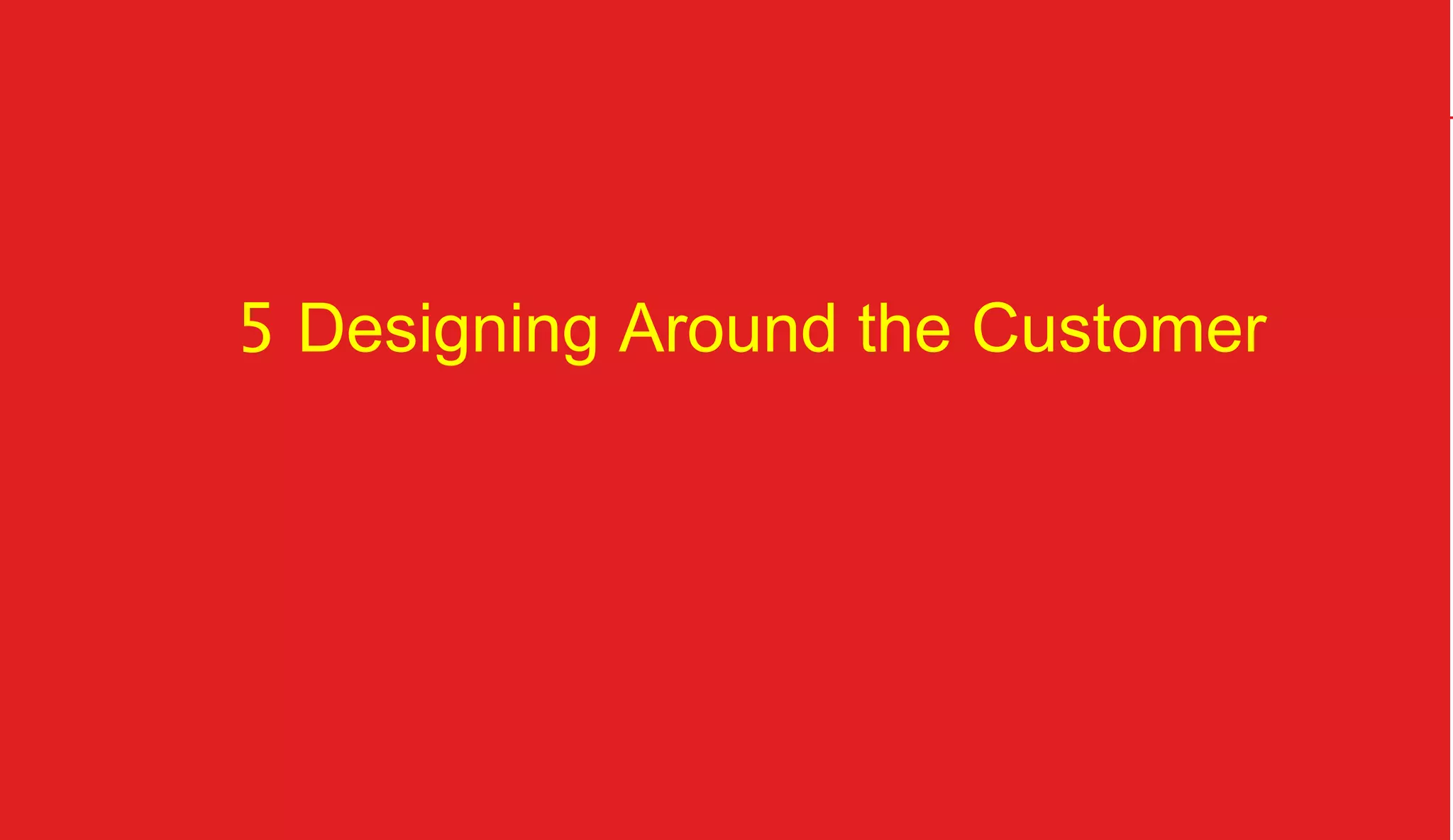 The document discusses designing organizations around the customer. It explains that customer-centric organizations focus their strategy, structure, processes, rewards, and people on serving customers. The document also discusses different levels of customer centricity that organizations can adopt, from customer-centric light to more intensive approaches. It emphasizes that customer-centric organizations understand customer profitability and segmentation to best meet customer needs.