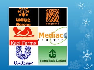 The document profiles six companies: Unilever Bangladesh, Aarong, Mediacom, Kazi Farms, Banglalink, and Uttara Bank, detailing their corporate culture, employee motivation, workload, job satisfaction, and organizational practices. Each company exhibits unique characteristics, such as Aarong's focus on women's empowerment and Banglalink's emphasis on customer satisfaction. Overall, all companies are reported to have high job satisfaction and low turnover rates, with varying degrees of employee benefits and organizational changes.