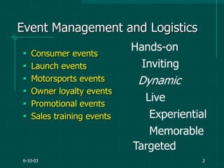 The document covers various aspects of event management and organizational development, outlining key principles and lessons from noted leadership figures like Colin Powell. It emphasizes the importance of effective infrastructure involving people, processes, and technology in achieving successful outcomes. Additionally, it discusses the corporate lifecycle, providing insights into the challenges organizations face during different phases and the significance of leadership in navigating these challenges.
