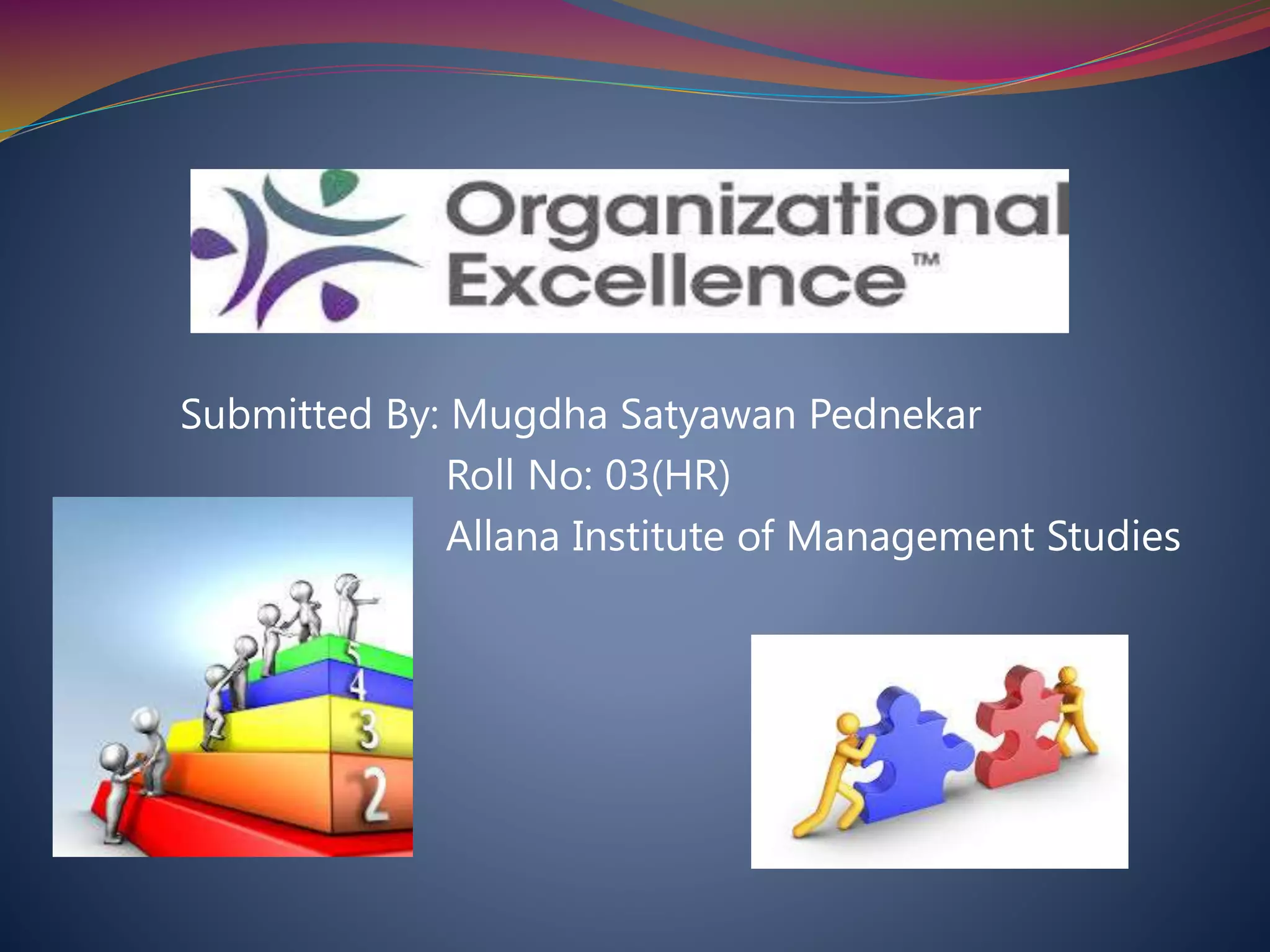 The document discusses organizational excellence and its keys. Organizational excellence is the ability of an organization to distinguish itself through specialization while achieving its goals. Keys to organizational excellence include having a clear mission, vision, values and strategic management plan, as well as effective organizational structure, systems, and processes for renewal. Organizational excellence is important as it allows an organization to evaluate and maximize its success, maintain discipline, and gain competitive advantages through alignment of functions. There are different forms of organizational excellence such as competitive, institutional, rejuvenatory, missionary, versatile, and creative excellence.