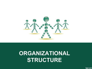 Organizational structure refers to how tasks are divided, grouped and coordinated within an organization. There are two fundamental processes in organizational structure - division of labor, which divides work into jobs, and coordination, which involves integrating work activities. An organizational structure has four main elements - span of control, which is the number of direct reports; centralization, which is the concentration of decision making; formalization, which are standardized rules and policies; and departmentalization, which is how employees are grouped. Common types of departmentalization include functional, divisional, matrix and team-based structures.