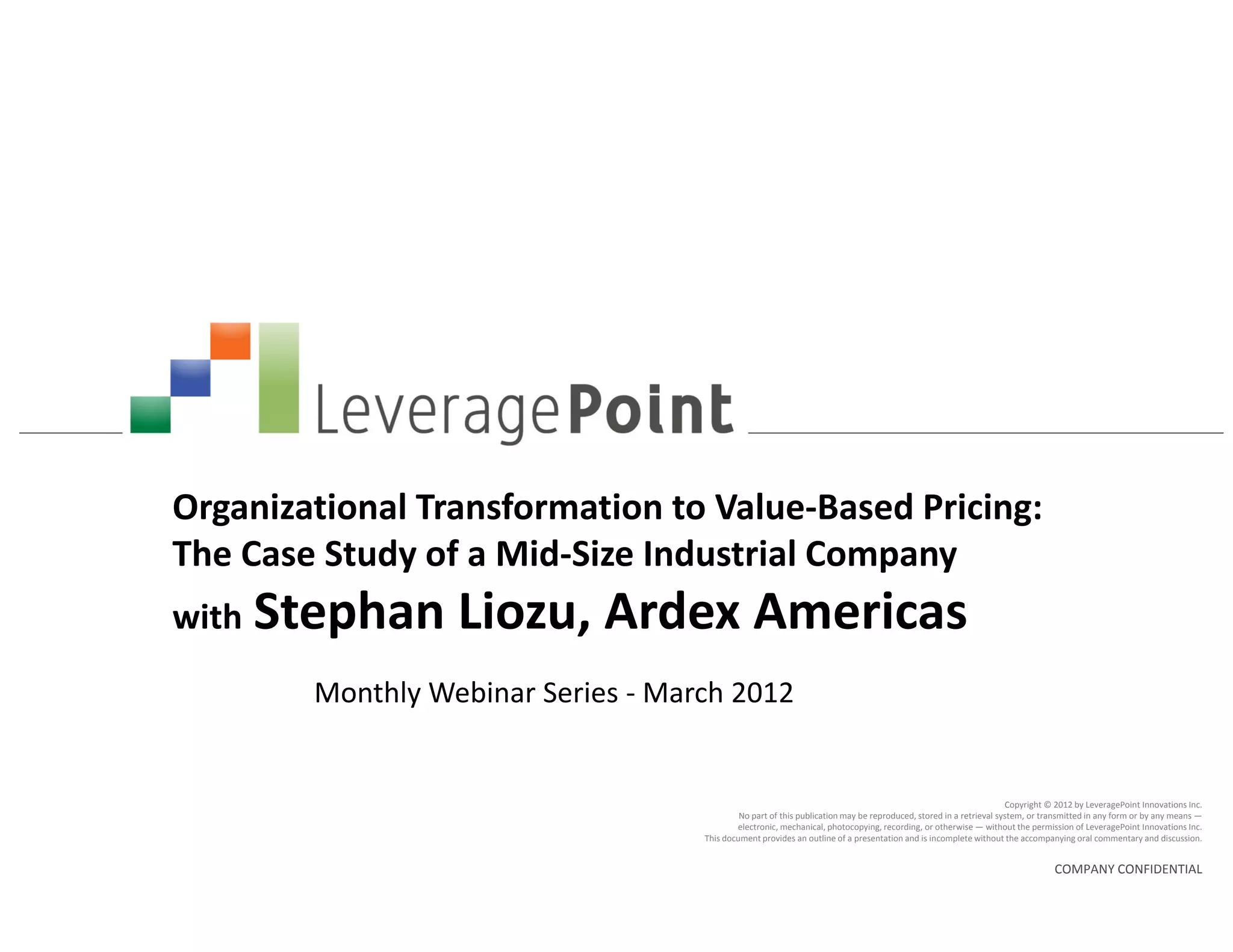 The document outlines a case study on Ardex Americas' transformation to value-based pricing, led by CEO Stephan Liozu, focusing on strategic pricing changes over several years. It details the company's journey from a cost-plus pricing approach to implementing value-based pricing strategies while emphasizing the importance of internal training and organizational alignment. Key success factors such as strong communication and technological support are highlighted as essential for monetizing differential value and managing pricing complexities.