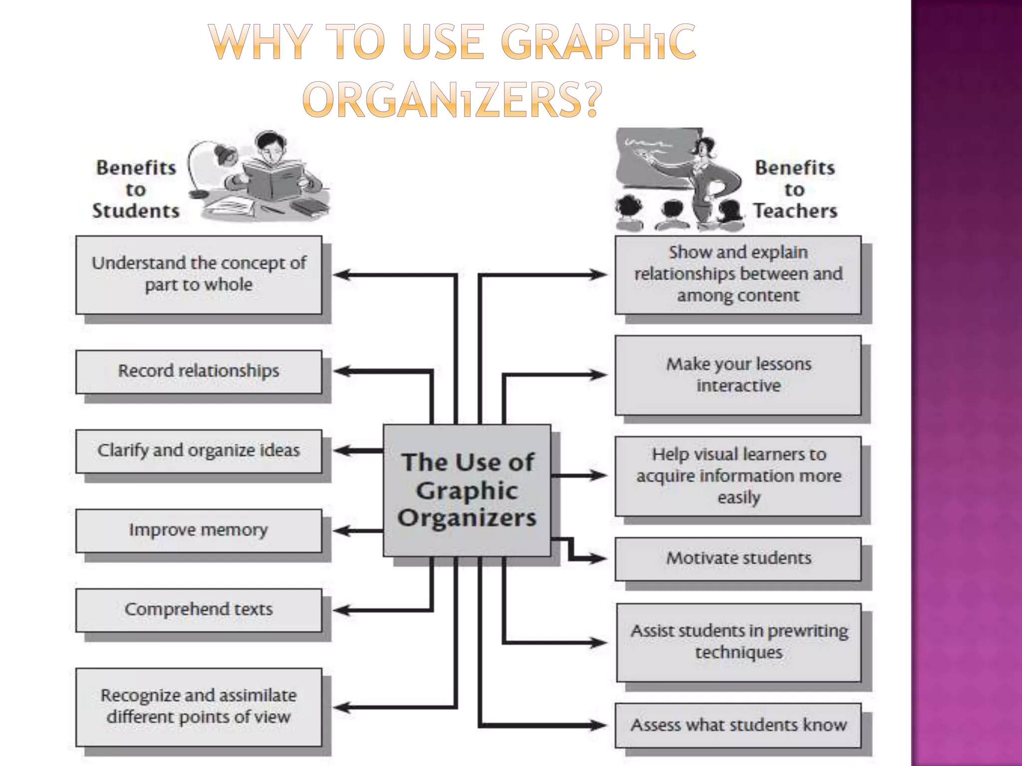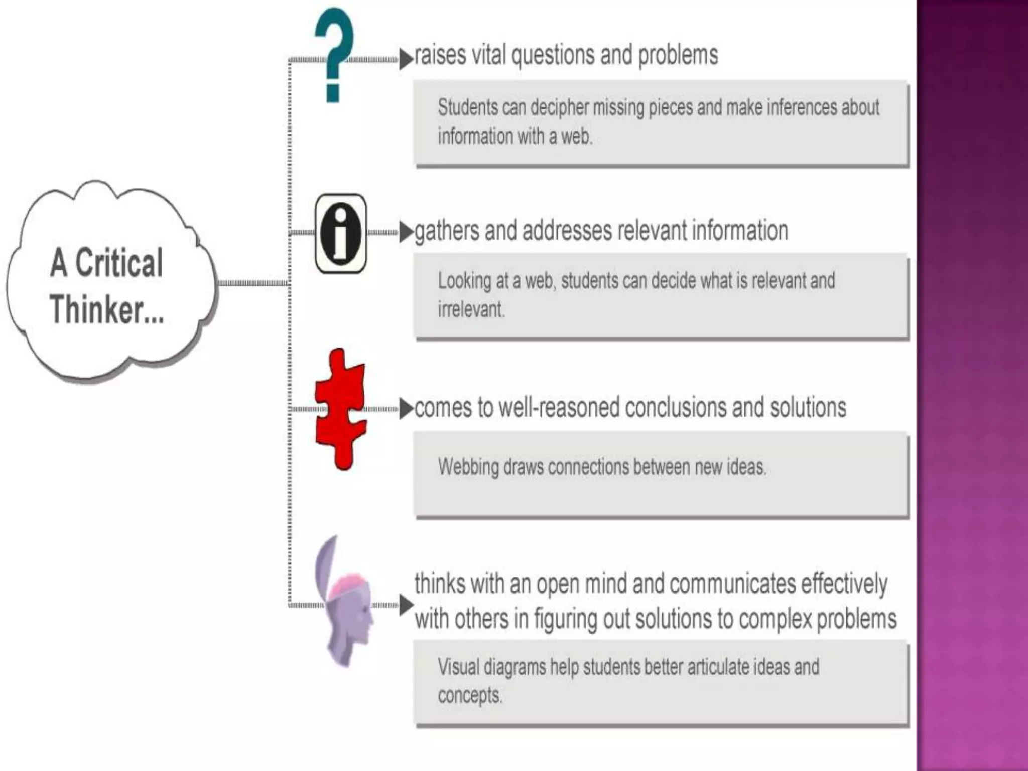 The document discusses how graphic organizers can be used to improve critical thinking skills. It provides examples of different types of graphic organizers like cyclical organizers, conceptual organizers, and sequential organizers. Graphic organizers help students make connections between information, break information into manageable chunks, identify prior knowledge, and improve research and problem-solving abilities. Specific organizers like Venn diagrams, concept maps, and cause-and-effect diagrams are explained as tools to help students compare/contrast, organize categories, and understand processes and relationships between concepts. The document emphasizes how graphic organizers promote higher-level thinking and language development when students summarize and discuss information.