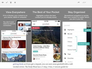 This document provides recommendations for digital organization tools including Unroll.me, a newsletter subscription management tool that consolidates your subscriptions, and a password manager to generate and store secure passwords for all your online accounts in one place.