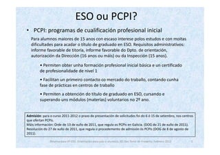 Máis información: Orde de 13 de xullo de 2011, que regula os PCPIs en Galicia. (DOG do 21 de xullo de 2011).