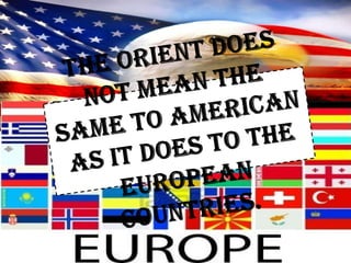 This document discusses the concept of Orientalism and its relationship between the Orient and the West. It provides definitions and perspectives from Edward Said on Orientalism and how the West exercised control over Oriental societies. It also discusses Britain's relationship with Egypt and how Britishers viewed Arabs and Orientals as childlike and different from mature Europeans.