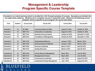 - A course template that lists the courses by semester, subterm, code, title, start date, and end date.