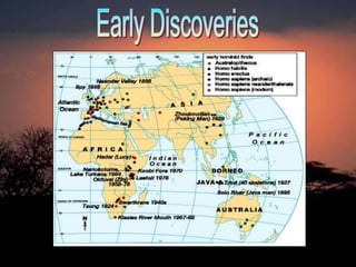 This document summarizes theories of human evolution from early hominids to modern humans. It discusses that: