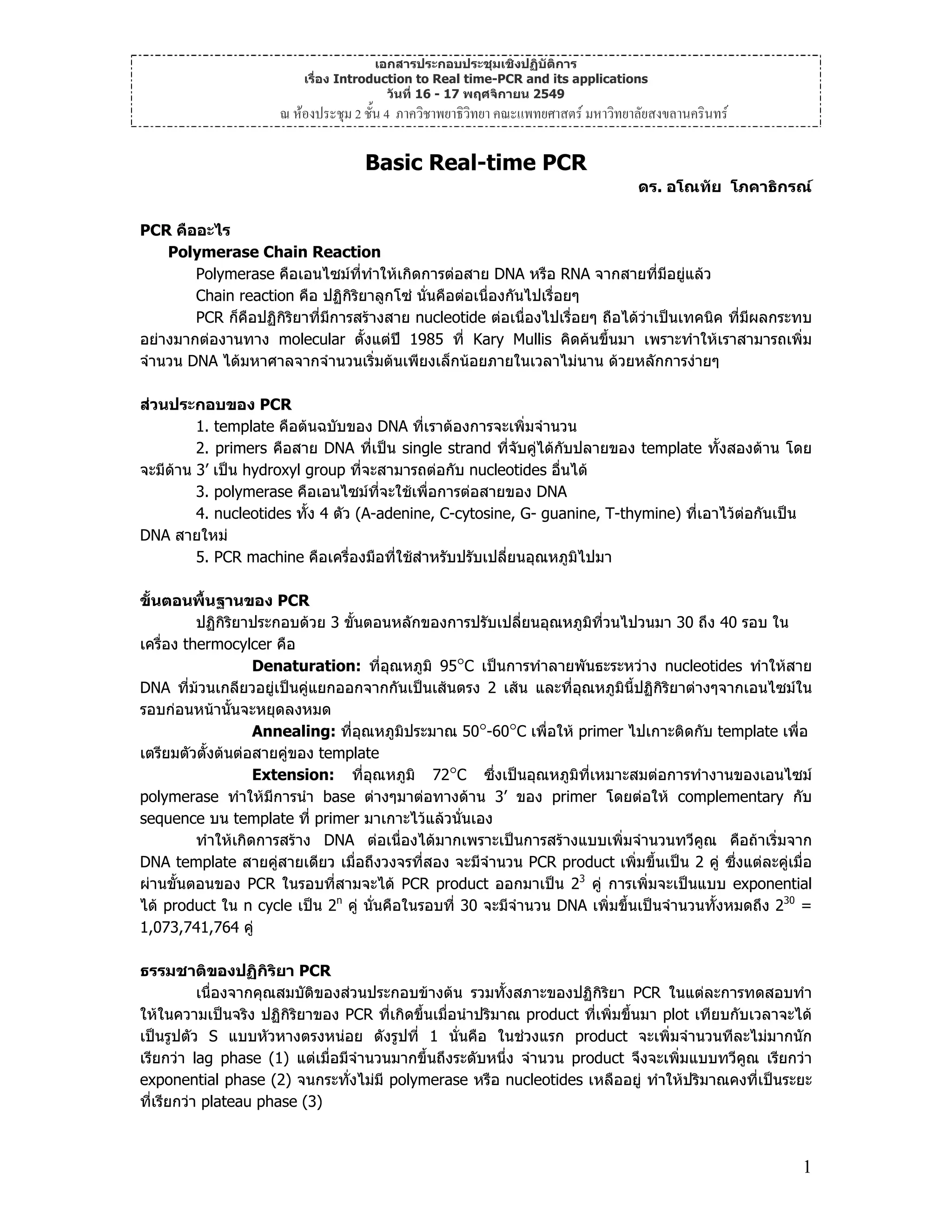 Publications เกี่ยวกับพื้นฐานของ Real-time PCR และ chemistries ที่ควรหาอาน