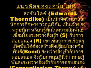 ทฤษฎ สัมพันธ์เชื่อมโยงของธอร์นไดค์ PPTX