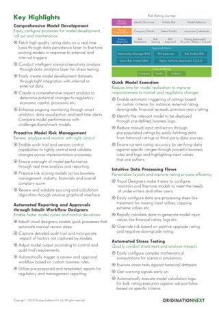 The document details the innovative features of OriginationNext, a comprehensive risk assessment management platform that integrates model development, risk management, and business processes for financial institutions. It offers automation, real-time data processing, and intelligent scenario analysis, addressing the inefficiencies of manual and fragmented risk reporting systems. By enhancing model accuracy and compliance with regulatory requirements, OriginationNext aims to improve operational efficiency and facilitate timely risk assessments.