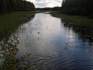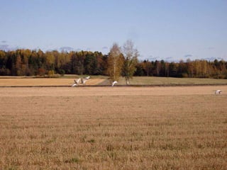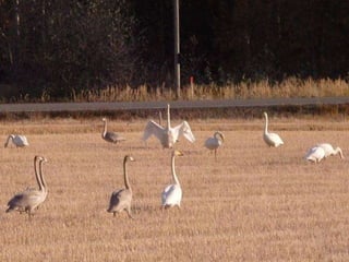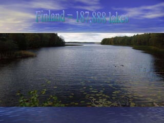 The document provides descriptions of scenes from rural Finland in autumn months. It mentions 187,888 lakes in Finland and wildlife such as wild ducks, geese preparing for migration in September, swans gathering in large groups in the village of Eräjärvi to migrate in October. It also describes traditional countryside houses often being painted red and forests that stretch as far as the eye can see, featuring plants and fungi commonly seen in the Finnish countryside.