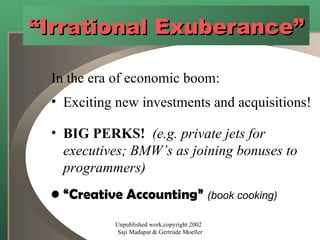 The document discusses how Buckman Laboratories was able to weather an economic recession through organization-wide process reengineering and global project portfolio management of its business systems. It implemented a single, flexible global business system using ERP software to gain efficiencies and consolidate reporting across its operations in over a dozen countries. This allowed the company to continue growing sales and avoid layoffs during the economic downturn, while other companies were cutting costs and projects. The success was attributed to executive sponsorship of the aligned initiatives and a professional approach to project management.