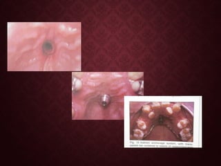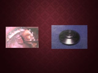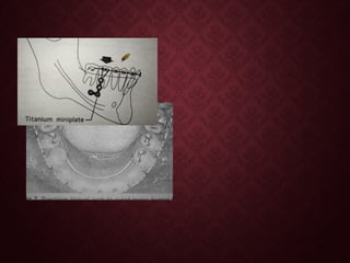 This document discusses implants used in orthodontics. It begins by defining implants and classifying them based on location, configuration, interface with bone, loading characteristics, anchorage requirement, and composition. Common materials used include titanium, cobalt-chromium, and ceramics. The concept of osseointegration is introduced, along with factors that influence successful bone anchorage. Finally, uses of implants in orthodontics are described, including for growth studies and anchorage when moving teeth.