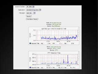 The document summarizes an OpenNMS case study presentation given at an O'Reilly Open Source conference. It provides an overview of OpenNMS capabilities for network monitoring and management and describes three specific case studies: