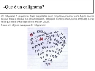do que trata o poema, no cal a tipografía, caligrafía ou texto manuscrito amáñase de tal
