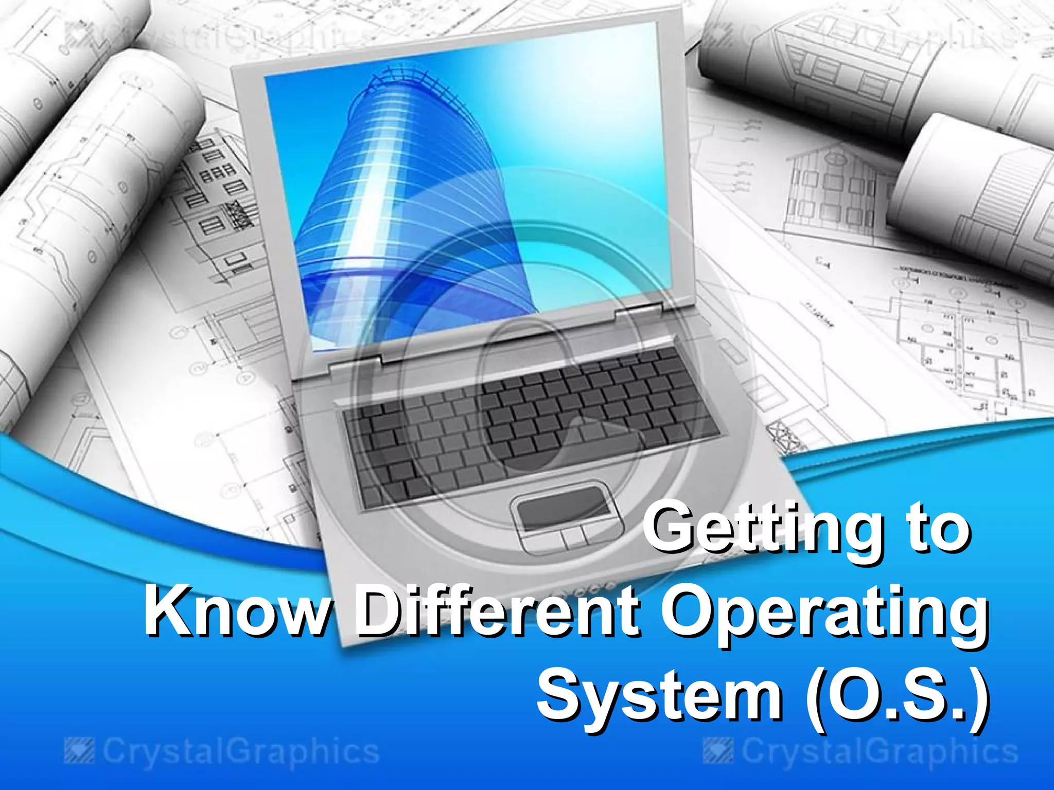 This document discusses different operating systems (OS), including Windows, Mac OS, Linux, Unix, and DOS for computers, as well as Windows Phone, iOS, and Android for mobile devices. It explains that an OS manages computer resources and provides an interface for user interaction. Examples of versions are given for each OS type.
